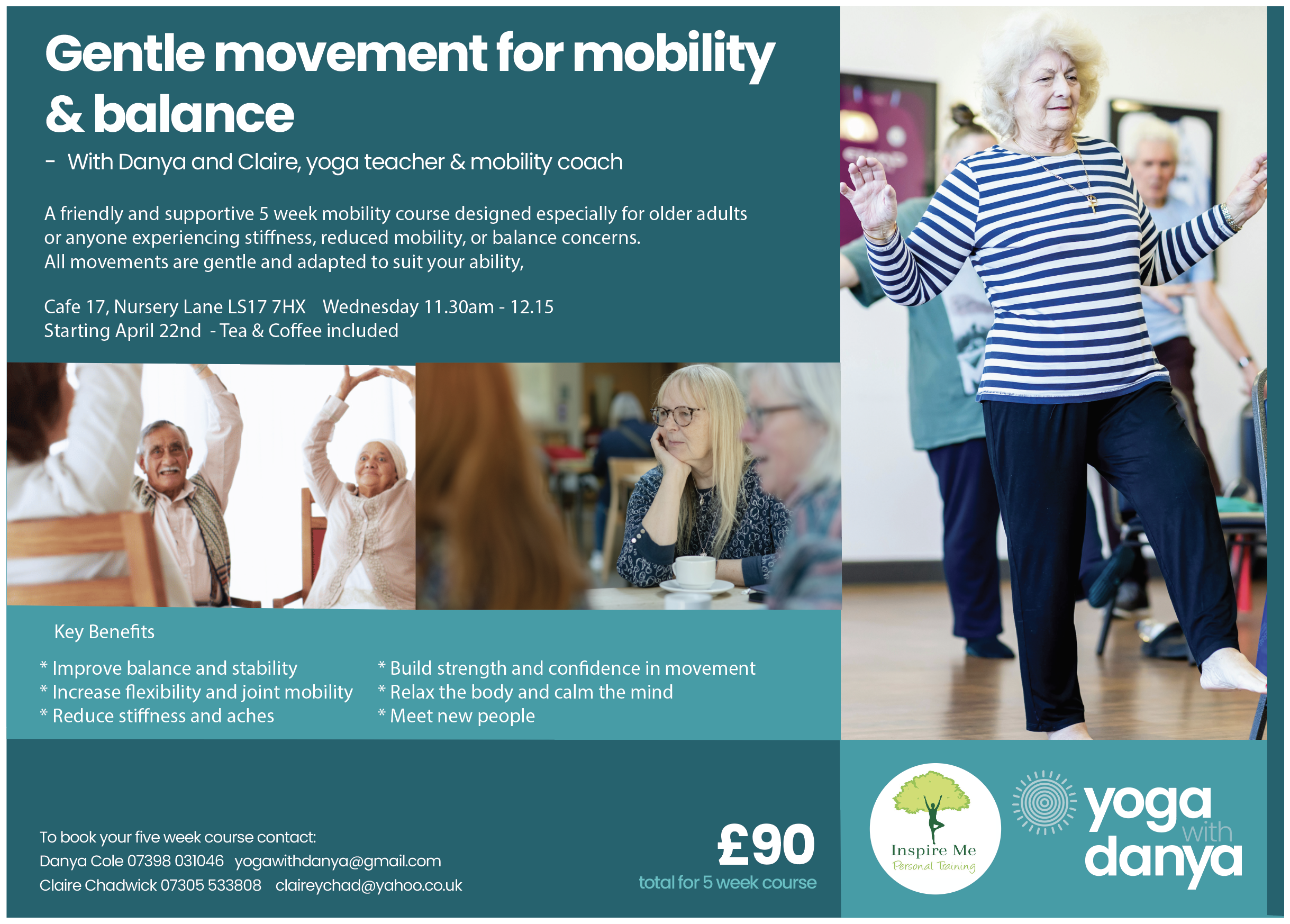 A friendly and supportive 5 week mobility course designed especially for older adults or anyone experiencing stiffness, reduced mobility, or balance concerns. All movements are gentle and adapted to suit your ability.